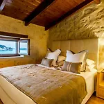 Exensian Villas & Suites beschikt over een balkon en een zitruimte en verschillende faciliteiten, zoals een TV en een flatscreen TV met satellietzenders. Naast een bank beschikt het interieur over een stenen open haard en geluiddichte ramen. Deze accommodatie biedt een jacuzzi, een inloopdouche en een apart toilet, evenals comfortvoorzieningen zoals een haardroger en handdoeken.